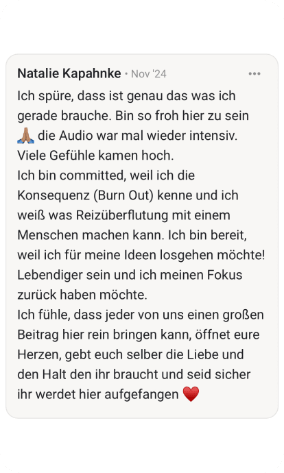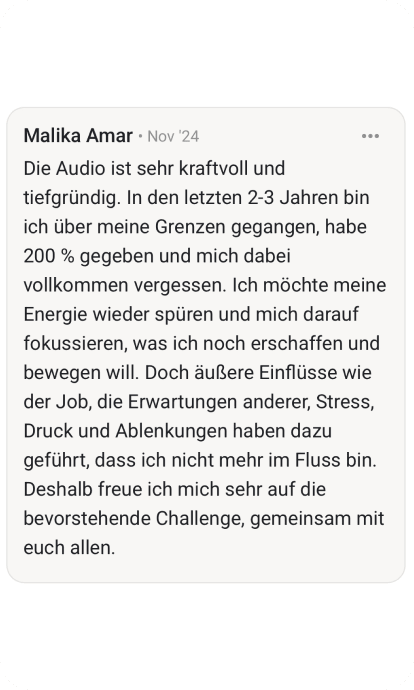 📱 Tägliche Audio-Sessions (20 Min) – Ich führe dich durch Übungen, Meditationen & Selbstreflektion