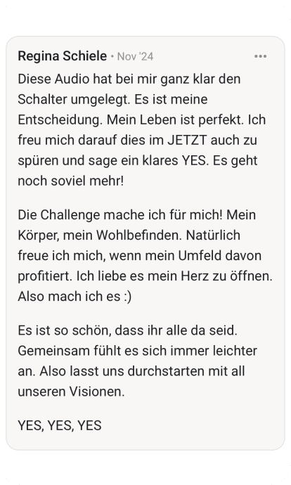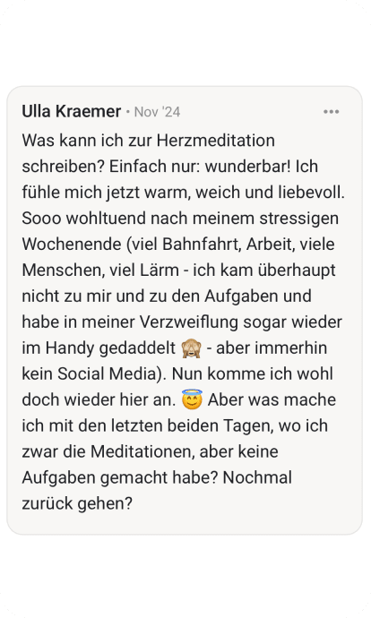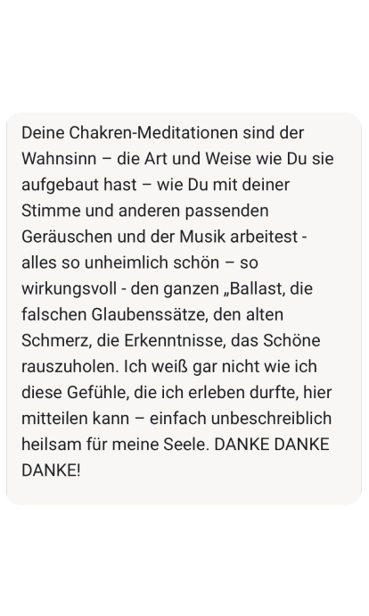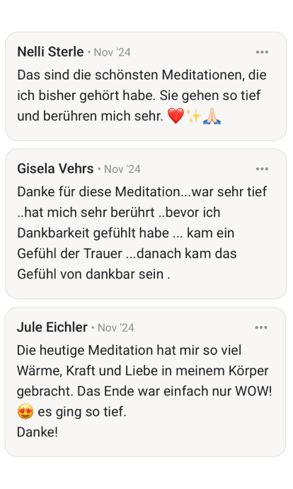 Absolut! Die Meditationen sind für alle Level. Ich führe dich Schritt für Schritt durch. Du musst nichts können, nichts wissen. Einfach nur zuhören und folgen.