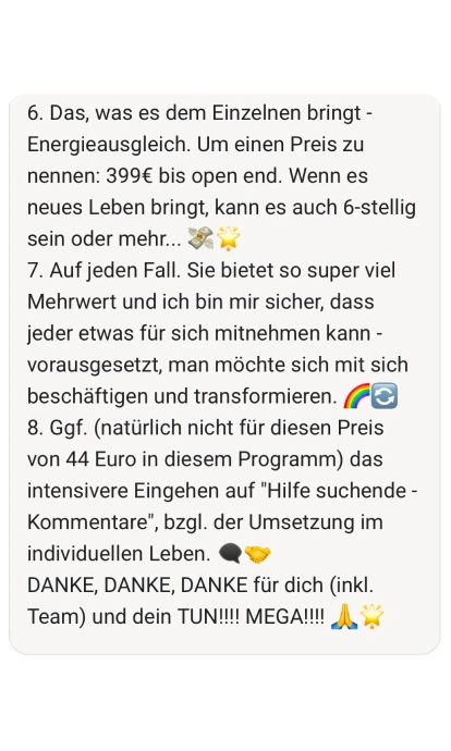 Sehr gute Frage. Genau darüber sprechen wir im Abschluss-Call. Und: Viele Teilnehmer entscheiden sich danach für unsere langfristige Community für kontinuierliches Wachstum.